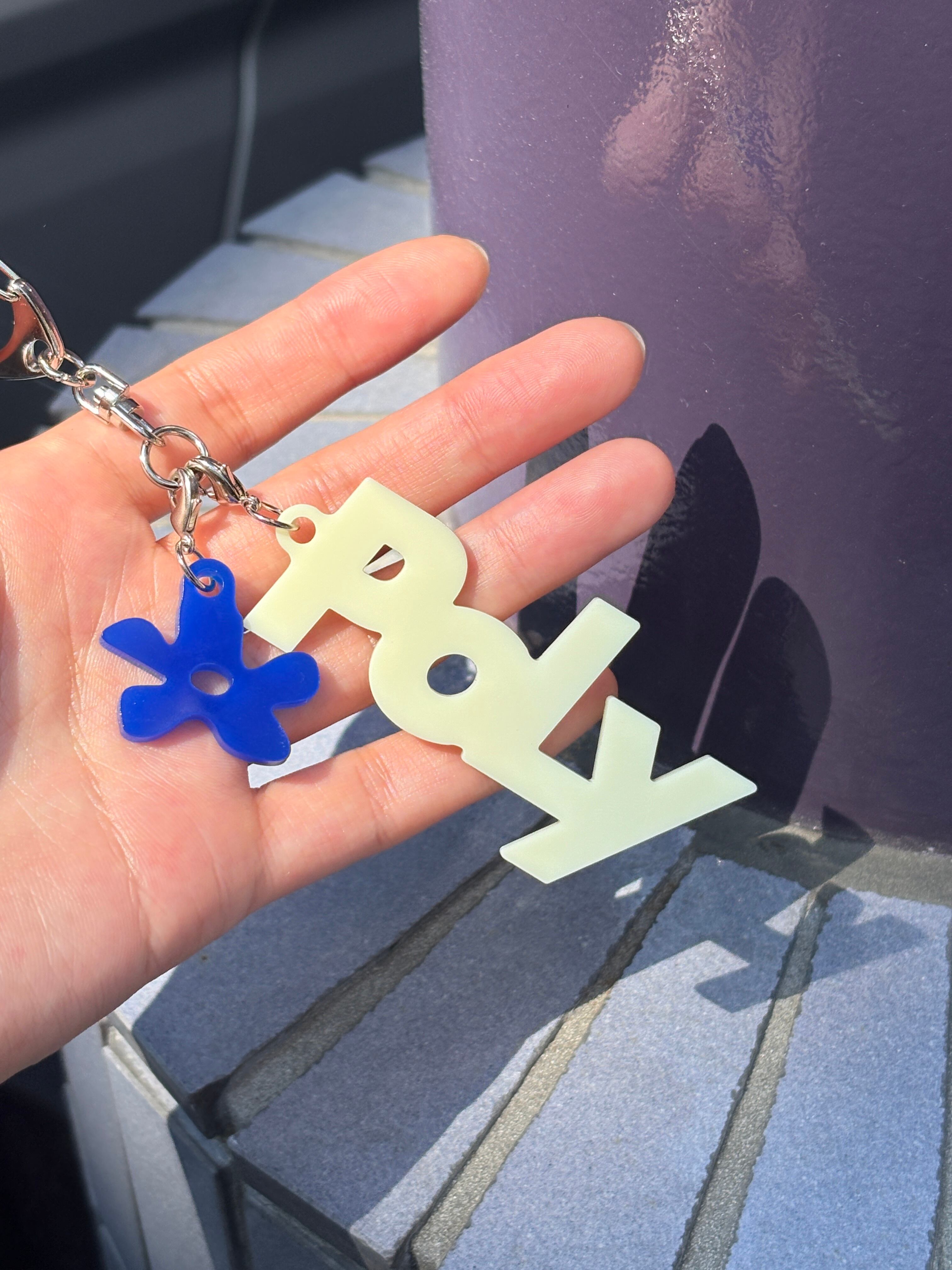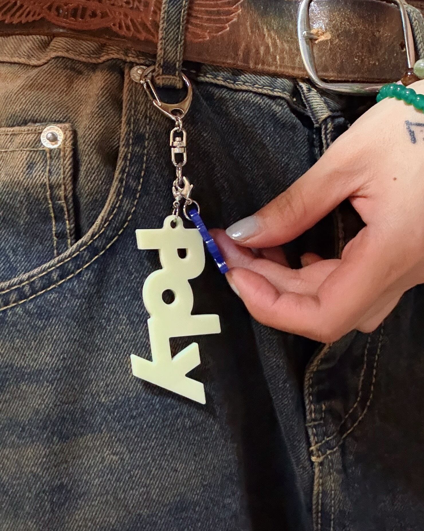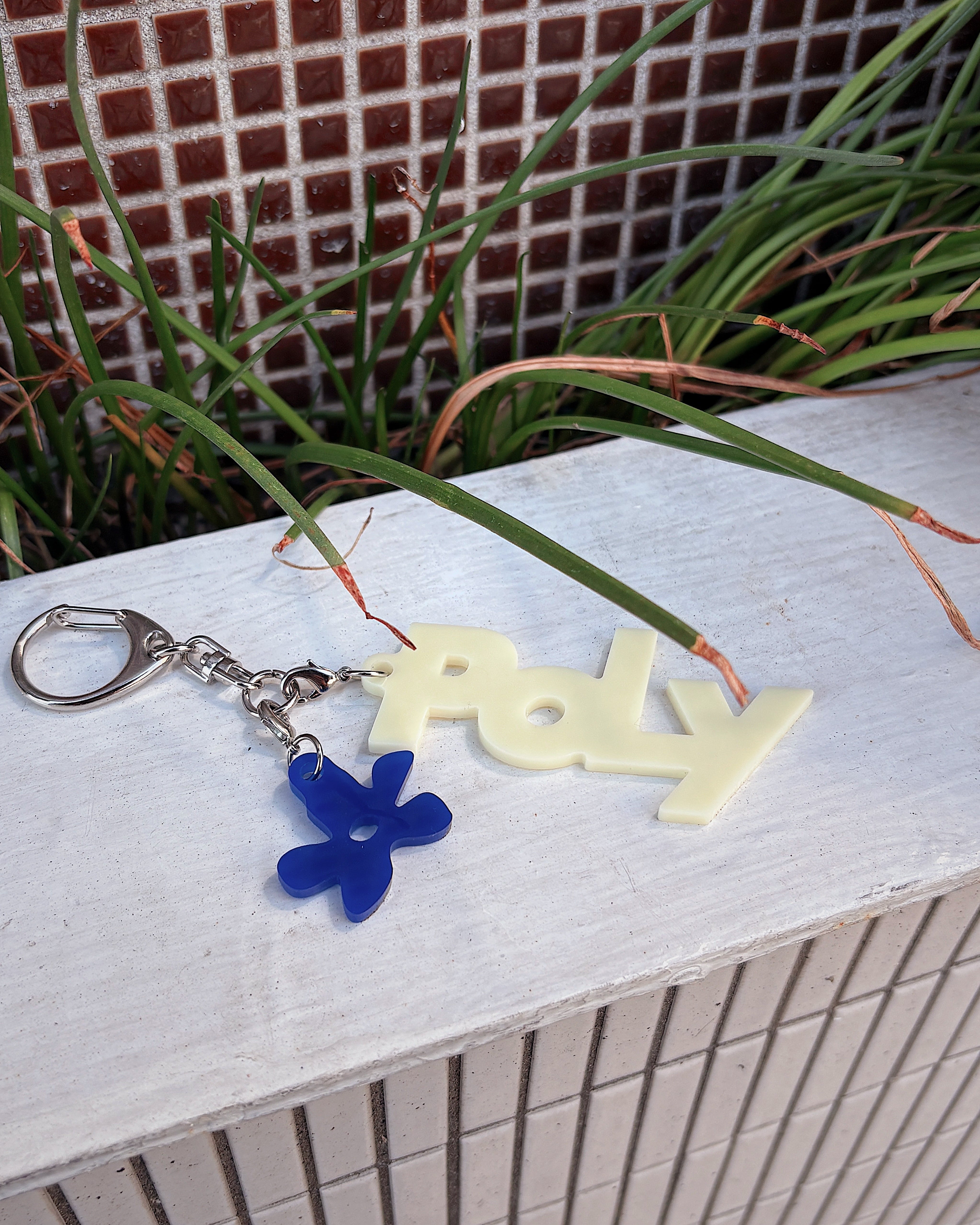 POLYのロゴとフラワーロゴを、チャーム2個付けで贅沢に!